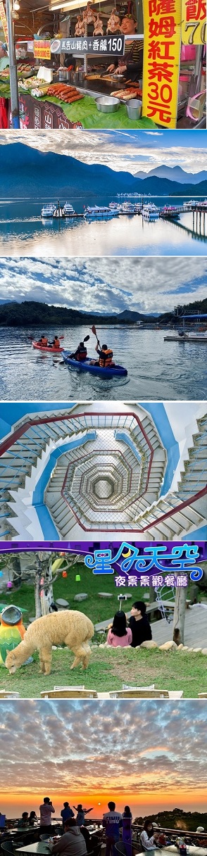 第1天 出發~日月潭伊達邵商圈{午餐}~活動3選1~a.日月潭遊船~b.獨木舟2hr~c.慈恩塔健行~南投星月天空~ HOME平安賦歸!